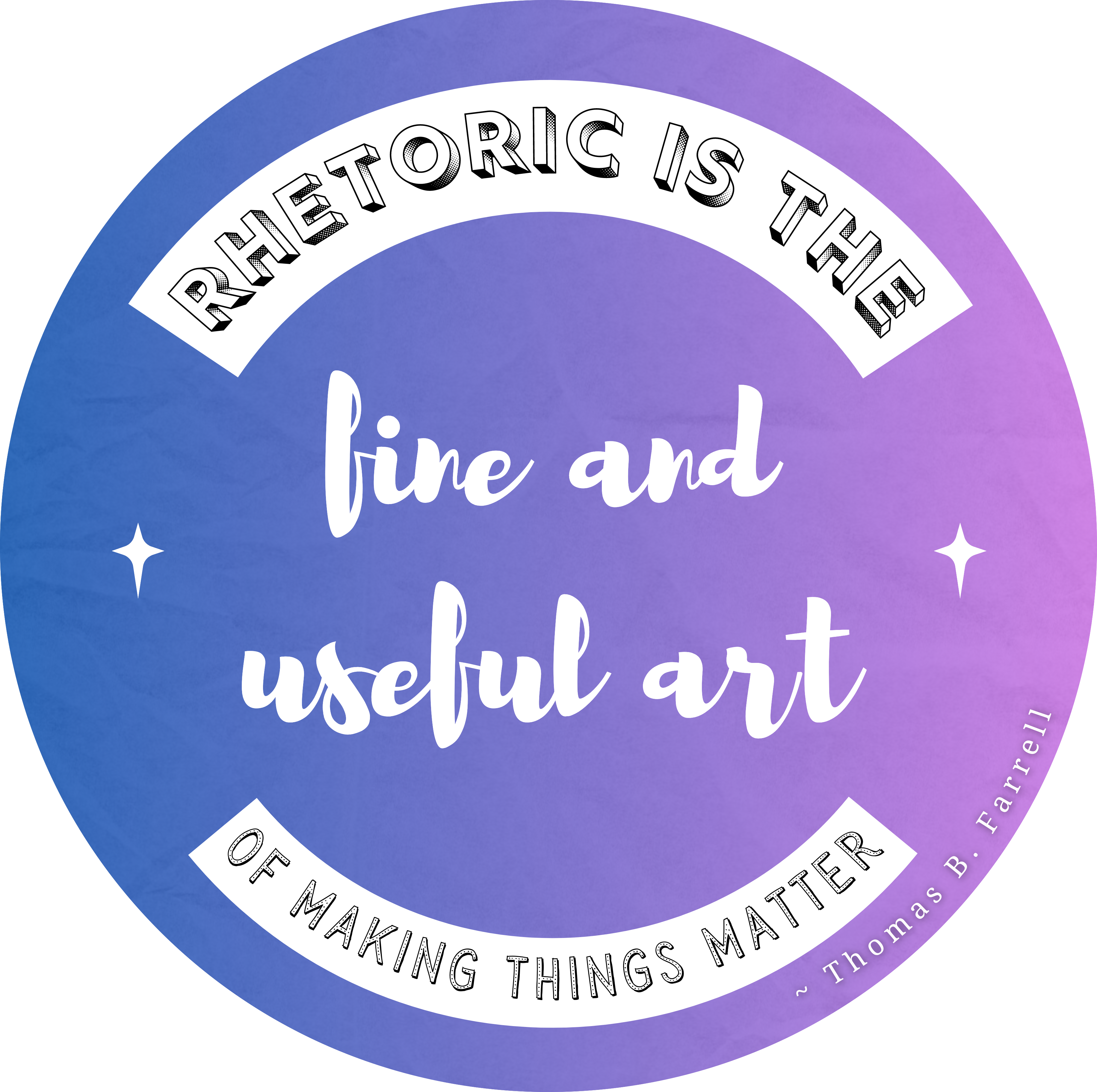 Defining rhetoric is one of the favorite activities of people who study, teach, and write about rhetoric. Which, if you know anything about rhetoric, makes a lot of sense. These stickers meet slightly different requirements from those above—they still need to be succinct(ish), but they’re less common as definitions of rhetoric go.